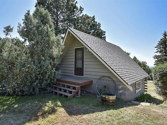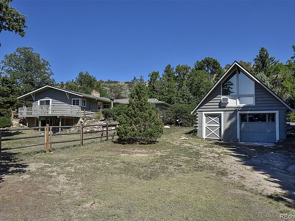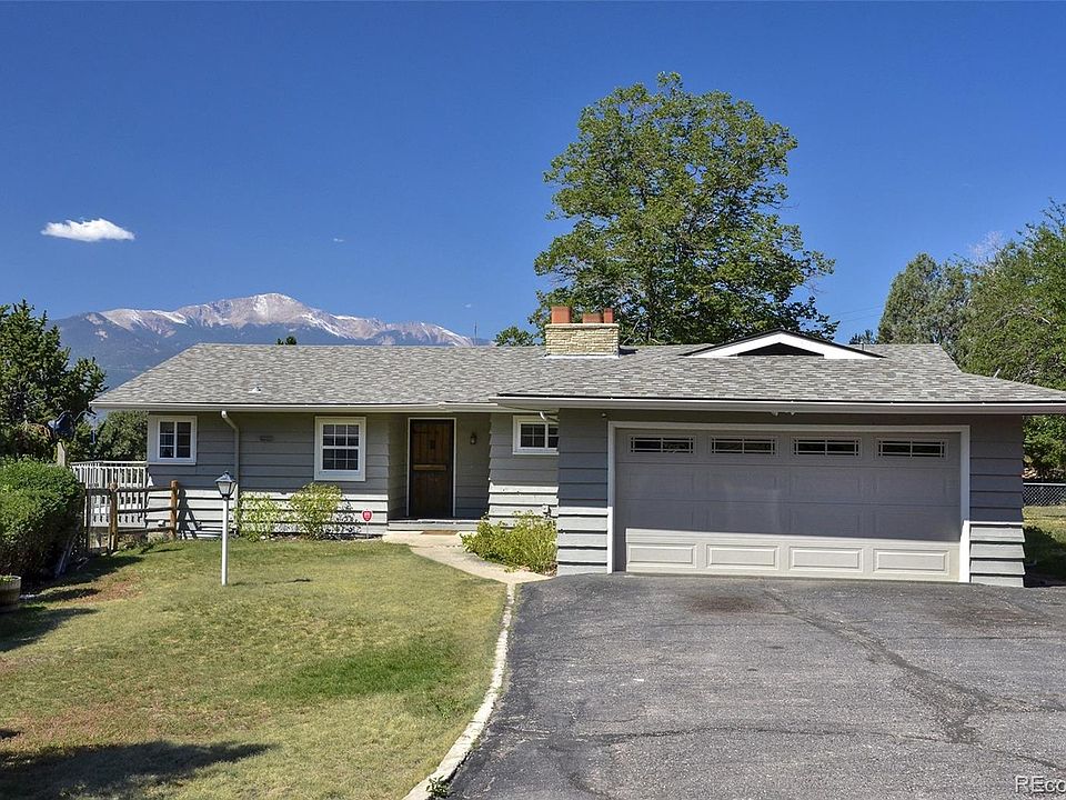 AMAZING and unique Property with GORGEOUS VIEWS of Pikes Peak on nearly an acre in a quiet neighborhood! Country living but centrally located! Set back on a Private lot and surrounded by dozens of mature trees, with an A-frame detached barn and 3rd car garage, with 400 sq ft of living space above could be a future guest cottage! Main home has enormous double slider walkout living/dining room with stone wood burning fireplace, built-ins, exposed wood beams and VIEWS!!! Kitchen has pass through to walkout dining area, solid surface counters, ceramic and glass tile back splash, pantry with pullouts and a window facing trees and the morning sunrise. Deck right off dining area for morning coffee and stunning mountain views! Main level hardwood Master w/walk-in closet & slider closet and picture window view of the backyard. Two more main level bedrooms, one is walkout for perfect office. Full bath has decorative inlaid tiles, double vanity, pretty wainscoting, linen closet and private pocket door to commode. Huge downstairs garden level family room has wood burning stove and under stair storage. Two Large Bedrooms, one with attached full bath and two closets. Walkout laundry with built-ins and utility sink and Multi-use Bonus room next door can be a playroom...exercise room...craft room...your choice! Utility/storage room has built in work table. Expansive yard on all sides of the house with views for days, has two separate fenced areas with room for RV, trailer, or garden Conveniently located near Colorado Springs Country Club, Palmer Park, shopping and 10 minutes from downtown. Automatic Sprinkler System NEW ROOF! NEW CARPET! NEW PAINT! NEW DECK! SERIOUSLY RARE AND SPECIAL OPPORTUNITY!