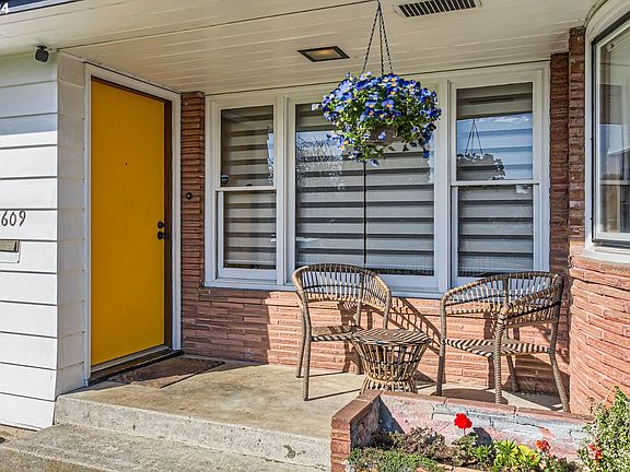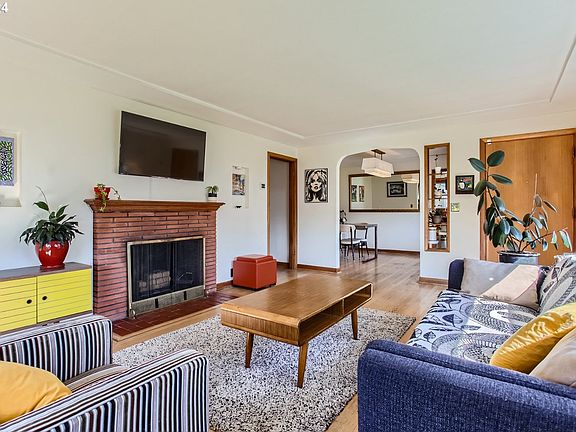 Charming 2 bedroom mid-century ranch home on large corner lot. Refinished hardwood floors throughout. Living room has picture window and wood burning fireplace. Newer Levolor blinds in living and dining room. Kitchen has new porcelain tile floors, induction stove top range and breakfast booth with bay windows. Insulated garage makes for great bonus space. Half bath and laundry room with newer lifeproof laminate floors off garage/bonus space. Covered patio and spacious fenced backyard with fire pit, raised garden beds and 1 fig tree, 2 pear trees, 3 blueberry bushes & 1 raspberry bush. Carport and room for more parking. Re-inforced attic space for extra storage. Electric furnace and air conditioning are less than a year old! Close to schools and parks. [Home Energy Score = 6. HES Report at https://rpt.greenbuildingregistry.com/hes/OR10226301]
