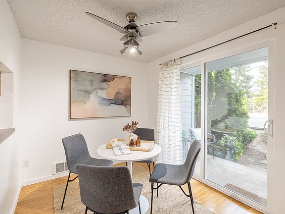 Spacious garden level unit in the Vantage Point Condominiums community! Enjoy the updates for a light and bright home. Bamboo flooring and carpeted bedroom. Kitchen has SS appliances and hardwood cabinets. The dining room with kitchen pass-through and partial wall between living room allows for conversation throughout the home. Add warmth to your living room with the fireplace or step out to your covered patio for some fresh air. Large bedroom with double closets Additional storage space off of the covered patio. Dedicated Parking Space. Complex recently renovated with new roof, windows, doors, railings and siding. Easy access to 405, 167, I-5 and downtown Renton. No rental cap!