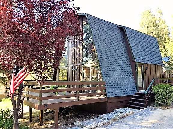 Adorable Gambrel Home that is nicely updated and fully furnished....TURN KEY! and that it is...all you have to do is turn the key and walk-in. The home is ready to go for your incredible mountain get away. An easy access lot, nicely landscaped with various types of trees and a stone path with greenbelt behind. The open floor plan with two story windows lets in all kinds of light along with a cozy "Swedish Style" wood stove/fireplace on a charming tile and brick hearth as well as two sets of sliding doors that lead to a spacious deck, great for entertaining and taking in the beautiful outdoors. The updated kitchen has white tile and stainless steel appliances. The upper loft bedroom is OPEN and offers a light and airy sleeping area, along with a comfy sitting area overlooking the living space below and has its very own built-in Pachinko machine......how much fun is that?! Want more privacy, it wouldn't take much to close it off. On the main level is the one full bath also nicely updated and the private bedroom with walk-in closet. Wood look laminate flooring on the main level and a very attractive neutral Berber carpeting on the stairs and upper level. The home offers a great amount of storage with various closets, cabinetry, and even an out door shed with power. So, lets turn the key so you can take a good look.