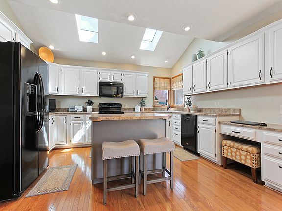WELCOME HOME to one of the best floor plans in the Eagle Ridge subdivision. This 4210 sq ft home offers open concept living with large gathering spaces, multipurpose rooms, open foyer & a convenient reverse staircase. Timeless traditional meets contemporary in this nicely updated home with solid wood white cabinetry in the spacious u-shaped kitchen, vaulted ceiling with skylights, large butler's pantry, workspace & hardwood flooring. Families will love gathering in the eat-in kitchen & spending time in the cozy family room by the gas fireplace. The stunning custom mantle & bookcase offers plenty of display and storage space. Play or relax in the large backyard or on the beautiful patio. This property is nestled on a quarter-acre lot surrounded by beautiful mature trees. New roof, water heater, lighting, custom wood blinds, entry doors, paint, remodeled baths. Prime NE location - minutes from schools, restaurants, shopping, city/dog parks & trails. Top Rated Northpoint Elem/NCHS.