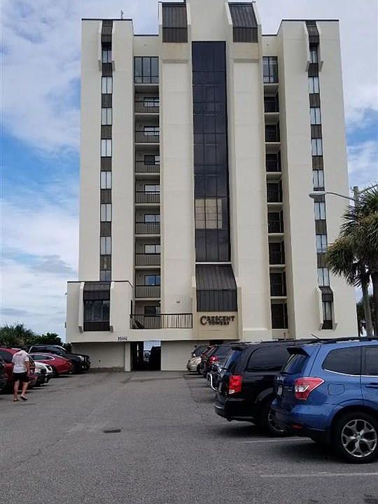 Direct oceanfront and immaculately maintained 1 bedroom 2 full bath condo, located in Crescent Beach, NMB. Crescent Towers is one of the more intimate complexes with only 34 units in the building. Hot water heater approximately 2-3 years old, A/C approximately 2 years old. Wainscoting was added down the hallway and also wrapped around the kitchen bar to keep the flow going. Entire condo painted in 2018 and new window treatments added. Unit boasts updated flooring throughout and an upgraded kitchen with custom cabinets and granite countertops. Electric fireplace conveys. Bathrooms have been upgraded also with granite vanities and new faucets. King size mattress in bedroom barely used and only 1 year old. Queen size sleeper sofa in living room less than 5 years old. New security system installed throughout complex in 2021. (Includes cameras on all floors, common areas and in parking areas) New lighting on all floors and in parking lots (2021). Elevator replaced in 2018. Outdoor pool is now heated as of 2021. Spacious storage closet w/shelving located on the outdoor balcony. Parking under the building along with an overflow lot across the street. Turn-key ready and clean!