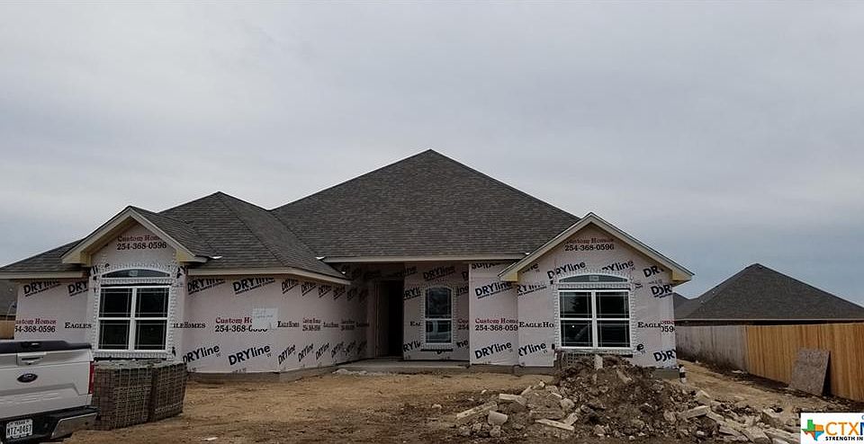 Belton ISD, New Build, Exquisite Craftsmanship!! This 4 bedroom, 2 bath, 3 car home with over 2153 sq ft is one that shows builders pride. Split floor plan, large kitchen w/ plenty of granite counter tops, pantry, custom cabinets, over-sized center island, and built in microwave. Master bedroom is truly an owners retreat. This large bedroom has 2 master closets, separate tub & immense shower with seating area, double sink vanity & accented ceilings. Living room has corner fireplace w/ beautiful archways leading from the living to dining area. Yard w/ full sod, sprinkler system front and back, and large covered patio.