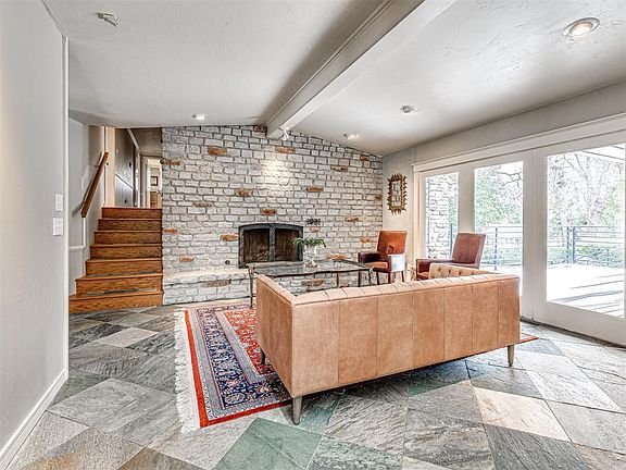 Step into a beautifully updated 4-bedroom, 3.5-bathroom split-level home that perfectly blends timeless Mid-Century Modern charm with contemporary upgrades. From the moment you enter, you'll be captivated by the natural materials that define this stunning home—sleek slate flooring, rich granite countertops, and a striking stacked stone fireplace create an atmosphere of warmth and sophistication. The chef-inspired kitchen is a true standout, featuring a high-end Jenn Air range and stainless steel appliances, making it a dream for anyone who loves to cook and entertain. The oversized master suite is a serene retreat, complete with hard surface flooring and a spacious walk-in closet. Whether you're relaxing on the Trex deck or enjoying the views from the covered patio, the lush landscape offers the perfect backdrop for outdoor living. This home is a rare gem that captures the essence of Mid-Century Modern style while offering modern comforts and functionality. Don't miss out on this one-of-a-kind property!