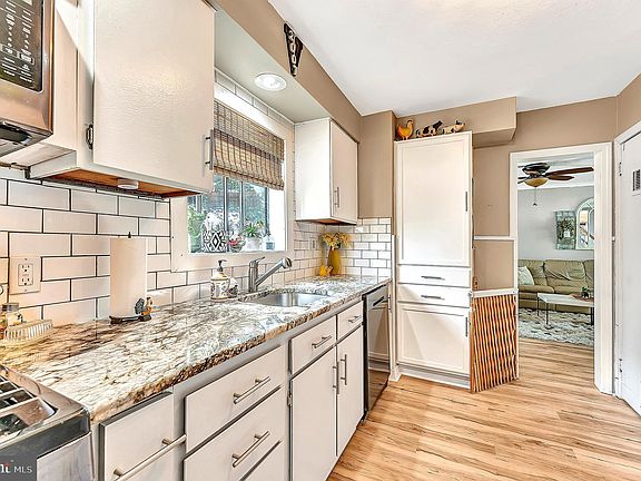 Great value in a well-maintained, 3BR 1.5 Bath with an awesome backyard oasis that includes a large covered Deck that partially wraps the Pool, a separate BBQ area, Raised Garden Bed, and a Koi Pond. Nice touches inside include the Kitchen's Granite Countertop & the Marble-top Double Vanity in the Full Bathroom. The living room has a natural gas fireplace and excellent natural light. The basement has a partially finished comfortable family room or office with built-ins for added storage. Money-saving Solar Panel Array transferable to the new owner. Just a few minutes to the Betsy Ross Bridge & Philly.