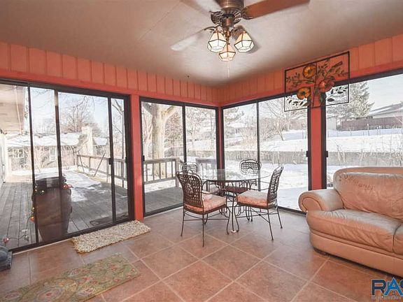 So much character in this spacious ranch style home in the heart of Sioux Falls! This home features an open design with vaulted ceilings and 2-sided stone fireplace as you enter. Youâll find 3 bedrooms on the main level with a huge master suite featuring a walk in closet, double vanity bathroom, and slider door to the patio. The spacious kitchen with stainless steel appliances and dining area lead to the cozy 3-seasons porch where you can enjoy the private backyard and plenty of shade trees. Enjoy the convenience of main floor laundry and a 3rd bathroom on the main level. There is an additional bedroom as well as an extra room that could easily be converted to another bedroom in the lower level. You will have plenty of space for family and guests in the lower level family room as well as another full bathroom and huge storage area. The garage is an oversized tandem giving you plenty of space for extra toys and storage.
