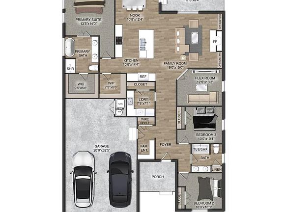 Welcome to the Tampa! This spacious 3 or 4-bed, 2-bath home offers 1951 sq ft of luxurious living space and a 3-car tandem garage. Unwind in the primary suite, complete with a relaxing soaker tub. The large open kitchen and living area create a perfect gathering space, flowing seamlessly onto the covered back patio for outdoor enjoyment. You'll love the convenience of the huge pantry, providing ample storage for all your culinary needs. With its thoughtful design and impressive features, this home is the perfect balance of comfort and style. *Renderings are representative of the floor plan and exterior elevation. Actual colors and finishes will vary.
