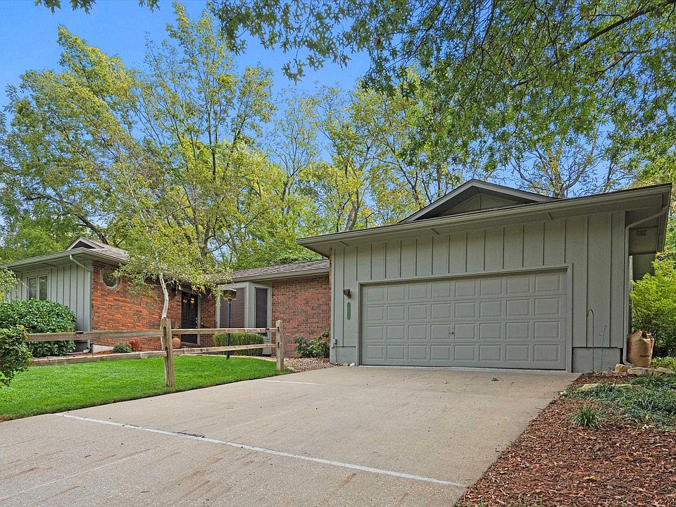 Welcome to this beautifully maintained one-owner ranch nestled in one of Lawrence’s most desirable neighborhoods. This thoughtfully cared-for 2-bedroom, 2-bath home offers easy one-level living surrounded by mature trees and peaceful, wooded views. Inside, you’ll find soaring ceilings and large picture windows that fill the home with natural light. The spacious living room features a brick fireplace with built-ins, while the adjoining dining area overlooks the private backyard. The kitchen retains its timeless wood cabinetry and offers a great layout with ample storage and counter space. Both bedrooms are generously sized, and the primary suite includes an en suite bath and great closet space. Recent maintenance updates—including cleaned ductwork and attentive care—make this home move-in ready. Situated on a quiet street with a two-car garage and lush landscaping, this property perfectly balances comfort, convenience, and classic charm—all just minutes from KU, downtown Lawrence, and local parks.