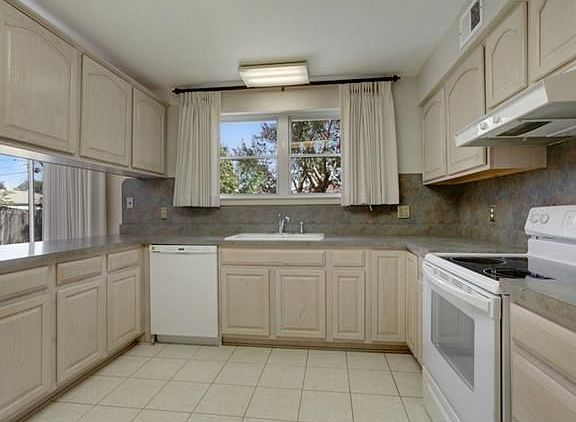 Stunning Mid Century Modern, soaring vaulted ceilings, PLUS original hardwood floors (under carpet) in the living room, all bedrooms, and hall! Freshly painted, neutral colors throughout, this pristine, well maintained home boasts family friendly floor plan, large living room AND den, huge master bdrm with built-ins, 2 master closets, and a renovated en suite bath with granite and tiled shower! BEAUTIFUL private back yard with wood deck, plus garage completes this exceptional package! All appl's included.