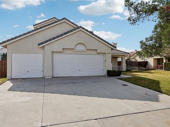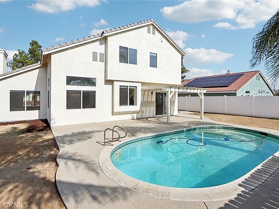 Welcome to 26093 Crestmont Circle in the beautiful city of Menifee. This spacious 4-bedroom, 3-bathroom pool home offers comfort, style, and modern upgrades throughout. Step through the charming double door entry or relax on the inviting front porch. Inside, you will find a convenient downstairs bedroom and full bathroom, along with a dedicated laundry room. Upstairs features a stair lift (can be removed if not needed) and three additional bedrooms, including the spacious master suite complete with an en-suite bathroom featuring a dual sink vanity, tub/shower combo, and a large walk-in closet. The bright and open kitchen boasts bar seating, stainless steel appliances, oak cabinets, and white subway tile countertops. Cozy up by the gas/wood fueled brick fireplace in the living room or head outside to enjoy the backyard, complete with a covered patio and a refreshing pool equipped with a new filter and pump. Additional highlights include a 3-car garage, a new AC unit and furnace, new water heater, fresh interior and exterior paint, new bedroom carpeting, and updated fixtures throughout, including new angle valves and faucets in the bathrooms and kitchen. With low taxes, no HOA, and thoughtful upgrades, this home is move-in ready and waiting for you.