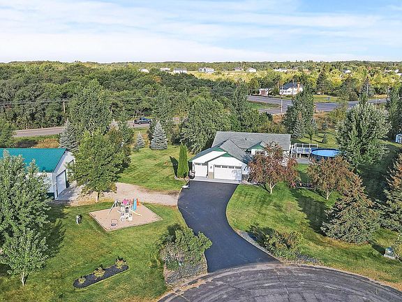 This stunning property on a 2.5-acre cul-de-sac lot offers the perfect blend of space, modern updates, and outdoor enjoyment. A massive 36x48 outbuilding provides room for all your toys, hobbies, or workshop needs, while the heated saltwater pool delivers effortless relaxation and low maintenance. The upper level features an open-concept design with modern finishes, a kitchen upgraded with 2019 appliances, and two spacious bedrooms near a convenient laundry area. The primary suite boasts a private bath and walk-in closet. Step outside to a two-level deck, perfect for entertaining or enjoying sunsets. Multiple fire pits and a storage shed add to the outdoor appeal. The fully finished lower level offers a large family room, two additional bedrooms, and a full bath—ideal for guests or extended family. Recent updates include a brand-new roof (2023), plus new siding, gutters, fascia, garage doors, and a sealed driveway (2024). Don’t miss this opportunity—schedule your showing today and make this amazing home yours!