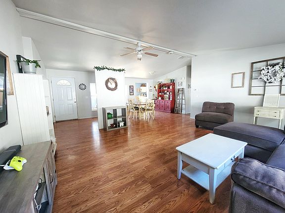 If one level living and close to town with a little bit of acreage, a shop for all the extra toy storage & a garage is what you are looking for, then look no further. This home is a 3 bed/ 2 bath triple wide with 1700+/- sq ft with a large front room and unique front door coat and shoe storage, the bedrooms have large closets, the pantry and laundry are in a separate room. There is a water softener and a new hot water heater. Seller is having a load of gravel delivered as soon as road restrictions lift, septic is scheduled for pumping, furnace and AC are on schedule to be serviced. Seller paid and transferrable Home Warranty through the remainder of the year. Water association bill is also paid through the remainder of the year. This home will be ready for its next owner soon!