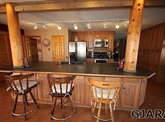 Whether you like large gatherings and need the space for friends and family, or just want to have some privacy and elbow room, this property can fit the bill. Sitting on a hilltop with sweeping views of vineyards and orchards, the Grand Mesa, Bookcliffs, and the Monument, this large home is set up for entertaining or running a home business. The kitchen bar is perfect for buffets & gatherings, and there is a comfortable living room upstairs with views, and downstairs has a family room plus craft room/home business setup with plenty of space! 2 large BR in basement are non-conforming.In addition, there is a 50 X 30 shop with 220, attached man cave, great storage upstairs, and covered exterior storage with loading dock. All on 15 acres perfect for your own shooting range, bmx course, or horse setup. Includes 4 rv sites with water, electric, and sewer, so your rv friends can come stay too!