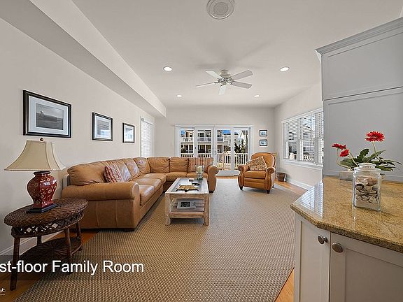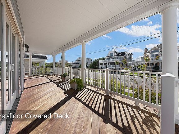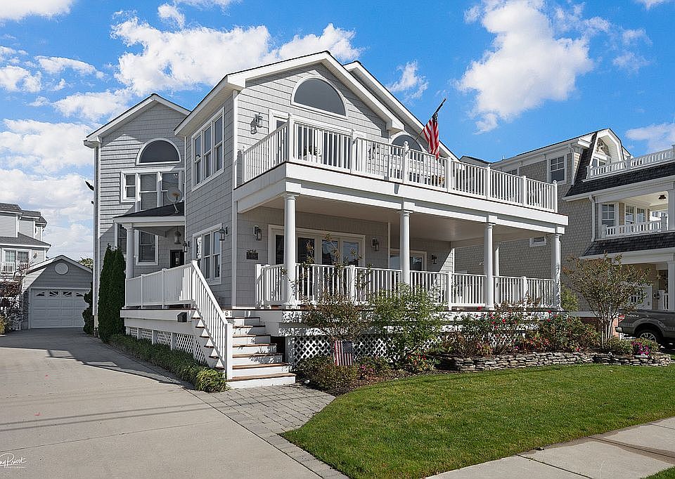 This 5 bedroom, 4 bath southend home is situated just 1.5 blocks from Avalon's wide and tranquil beaches. The first floor features a large family room with a slider leading out to a covered deck, three beautifully decorated and spacious bedrooms and two full baths. The laundry room has an additional full sized LG refrigerator, along with a Whirlpool washer and dryer. The two rear bedrooms have access to the rear deck and the backyard. The second floor features a well-equipped kitchen with a Subzero refrigerator, a Viking stove and a Koldfront wine cooler. The dining area and living room have cathedral ceilings and they lead out to an expansive deck where you can enjoy views of both the beach and the bay. The spacious master suite features a master bath with a spa and a walk-in closet along with access to a rear deck. The second floor also features another spacious bedroom and a large hall bathroom. Additional amenities include; a detached garage with a driveway that offers plenty of off-street parking, an outside shower, hardwood floors throughout, stainless steel appliances and beautiful landscaping. This is the perfect home for relaxing and/or entertaining your friends and loved ones!