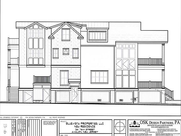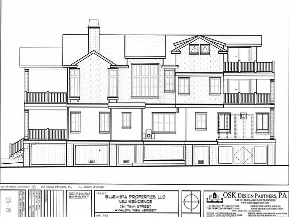 UNDER CONSTRUCTION! CUSTOMIZATION OPTIONS ARE AVAILABLE FOR THE EARLY BUYER! This brand new beautifully appointed, elevator-served home with 6 bedrooms, 5 full baths, 2 half baths and heated pool is located on the south side of one of Avalon's quietest streets. Ideally situated toward the southern end of Avalon, this home offers bay views and very short walks to pristine beaches on one side and beautiful bay-side sunsets on the other. With 4,152 square feet of living space and multiple patios and decks, there are plenty of opportunities to entertain family and friends both indoors and out. The first floor is entered via a gracious 84" wide solid mahogany door and sidelight combination leading to a two-story light-filled foyer. This floor features three bedrooms with en-suite bathrooms, a powder room, a large laundry room served by a direct side entry, a spacious den with fully appointed wet bar, and a covered open air porch with gas fireplace. Entering the second floor, you are immediately struck by the abundant natural light and openness of a grand space interconnecting the living and dining areas, kitchen and partially covered deck. The spectacular kitchen offers upgraded quartz countertops, a Subzero/Wolf appliance package, custom cabinetry, separate pantry and a spacious center island. The balance of the second floor features a beautiful powder room and two generously sized bedrooms with en-suite bathrooms and shared access to a covered deck. The third floor is given over completely to a huge, totally private master bedroom suite complete with a luxuriant marble-laden bathroom, a 2nd washer-dryer pair, and access to a bright southern-facing open deck. Lovely outdoor spaces are highlighted by elegant landscaping, a gracious heated pool, a travertine pool deck with fully equipped wet bar, an outdoor shower and changing area, and a storage cabana. Developed by the distinguished team of BlueVista Properties, OSK Design Partners and Harbaugh Construction.