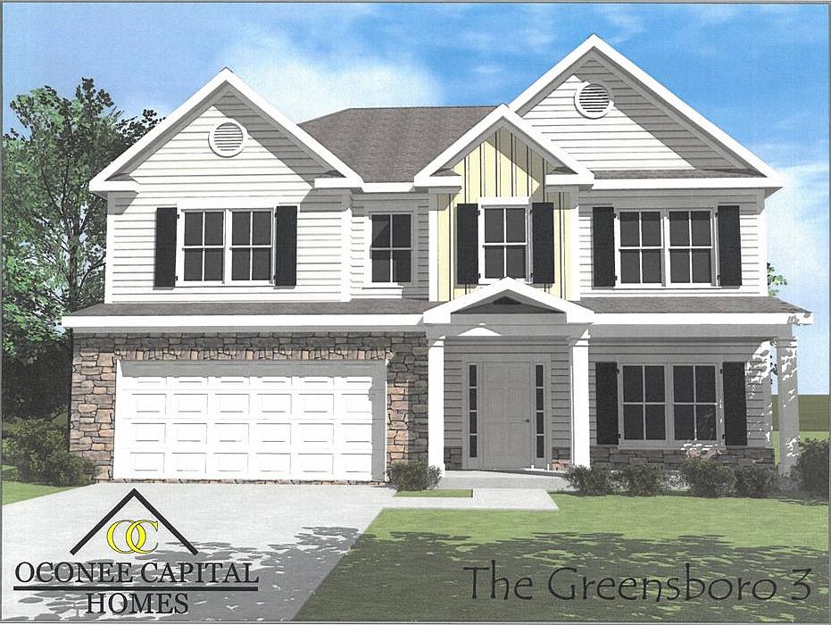 Wonderful NEW CONSTRUCTION in McCormick Hills! Oconee Capital Homes offers The Greensboro 3 Plan - a 2 story, open floorplan, 4BD 3BT home with a sizeable lot and 2 car attached garage. Enter this beautiful stone front home to find a formal dining space with coffered ceilings, then walk down the hall to a spacious family room, open kitchen, and adjoined kitchen area. The in-law suite is conveniently located on the main level as well. On the upper level find the spacious master en-suite which features a walk-in closet, double vanities, separate tiled shower, and frameless shower door. Enjoy granite countertops in the kitchen and all three bathrooms! The fenced yard is sodded and irrigated to create a luxurious outdoor space. This new build is ready for you to move-in and make it home!