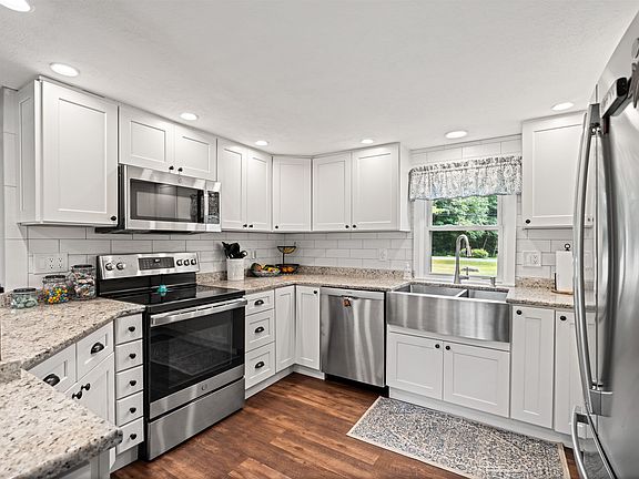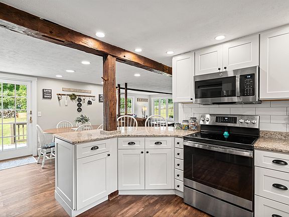 Located in the highly sought after Town of Auburn you will find this wonderful multi-generational home. Upon entering the main home you find charming and sunlit rooms starting with a mud room with its cozy woodstove. The main home offers a beautiful newer eat-in kitchen with stainless appliance, stainless farm sink, granite counters, tons of counter and storage space. The floor plan seamlessly connects the warm and inviting family room with its 2 large newer windows and LTV flooring. A versatile bonus room offering multiple possibilities, such as office/play room/gym/guest space, is also located on the first floor. Sliders off the dining area lead you to a large deck and wonderful back yard. Two well-appointed bedrooms and newer bathroom are located on the second floor. The accessory unit, with its own separate entrance, can be used as an in-law, teen space etc. as it offers your own kitchen/living space, 1 bedroom and an additional bonus room for office or whatever your needs, along with it's own bath. This wonderful home also offers attic storage, a very handy work shop and storage sheds along with a firepit area to enjoy the chilly nights. The well situated .98 ac. corner lot, within walking distance to a community play area and the trails along Lake Massabessic, provides a peaceful and convenient setting while being in close proximity to major highways. Town of Auburn High School students attend the much desired Pinkerton Academy. Showings start Friday 8/2/24