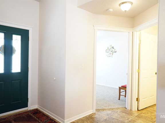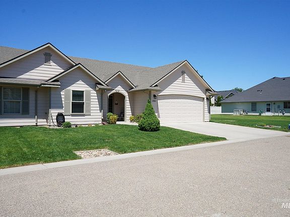 55+ Community - River Crest Estates in Fruitland. This comfortable, well-maintained single-level townhouse built in 2004 features two bedrooms, two bathrooms, covered patio and attached two-car garage. Floor plan gives an open and spacious feel with vaulted ceiling in living room. New interior and exterior paint. City lot is .16 acre with nicely manicured lawn. 9' x 40' concrete slab with an 8' x 16' storage shed on one portion. Conveniently located to shopping, restaurants, medical services, and I-84.