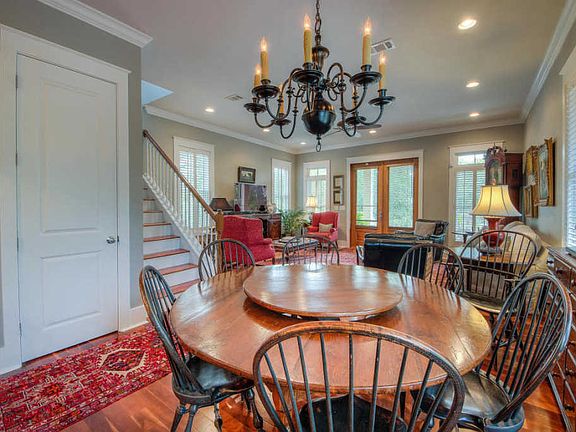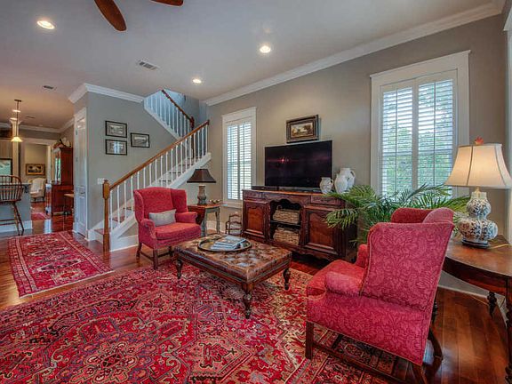 This meticulously maintained home breathes coastal elegance. With a flowing open floor plan and an abundance of windows, the bright and airy living space is perfect for entertaining family and friends. The spacious kitchen features custom cabinets, Carrera marble countertops, an icemaker, stainless appliances, and a separate cooktop and range. Just off the kitchen is a huge butler's pantry with ample storage space to use. Cherry hardwood floors run throughout the home. With french doors opening to the wrap around balcony, the large second floor master bedroom is a peaceful retreat inside or out. The 4th bedroom has been converted into a master sitting area, and is a great space for reading a book, surfing the internet or watching TV. Outside, landscaped yard is a perfect spot for grilling
