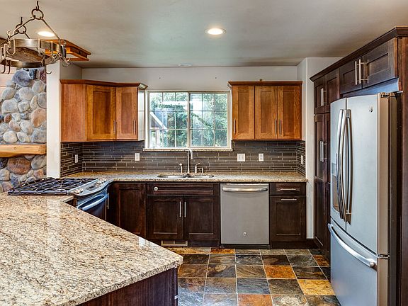Custom home located in a highly desired westside location with panoramic views. The property is nestled along Manastash Creek at the end of a private drive sitting on 3 acres. Mature landscaping brings an outside paradise to life.