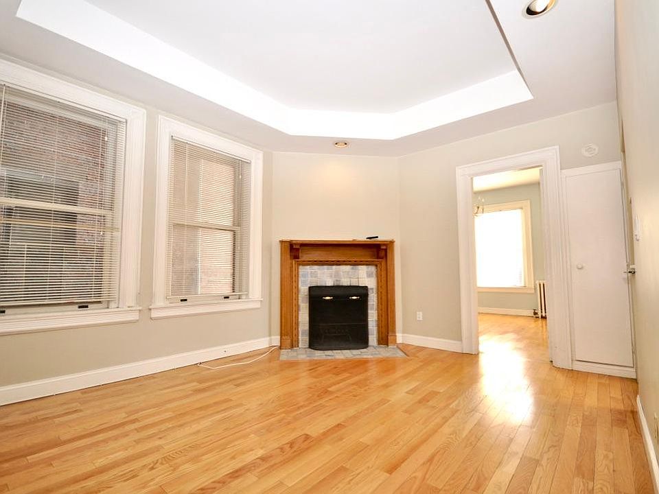 Available February 1. Very spacious 1 Bedroom in Elevator Building On Beacon. Large Bedroom (Can accommodate a King or Quenn Bed) w/ Walk-in Closet.This Apartment is In Great Condition and Located In A Fantastic Location. High Ceilings, Decorative Fire Place, Recessed Lighting & All Rooms Have Windows. Updated, Fully Applianced Kitchen w/ Black Slate Floors / Counter. This Condo Is Very Bright & Sunny! Building Has Common Laundry & Roof-deck.Heat & Hot Water Included. Sorry no pets.Fireplace Is Decorative. Owner pays for heat, hot water,cold water and sewer. Move in funds are first month rent - security deposit.