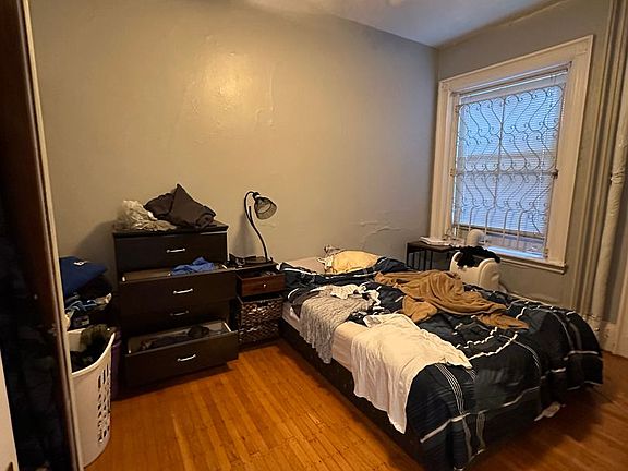 Sunny 1 bedroom in elevator building with arched and bow windows, fireplace, hardwood floors, eat-in kitchen, great views from common roof deck, laundry and bike storage in building.