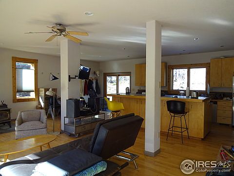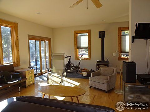 Sunny, spacious, warm & welcoming. South facing. County maintained access, quiet neighborhood, Nat'l Forest and trails. Banana Belt of Nederland. Open floor plan maximizes passive solar gain. Pella windows & doors, 2x6 construction, 9" ceilings. Natural beauty of lot includes rock outcrops, aspen forest, mature pines and meadow. Very private. Easy access to back of lot on undeveloped N Skyview Dr. 5 mins to Ned; 20 mins to Boulder. Adjacent Lot 1 Bonanza Mtn Estates(.70 Acre)also available.