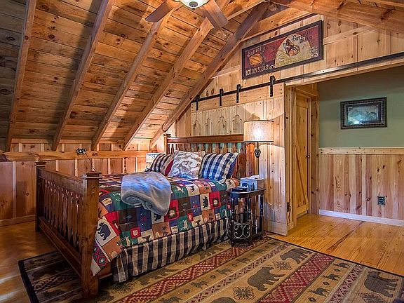 Large country cabin with seasonal mountain views! All wood interior, unique floor plan with brand new kitchen with granite counter tops. 3 bedrooms with large loft and 3 full bathrooms. Property is surrounded by hiking and riding trails as well as some of the best trout streams in North Georgia!