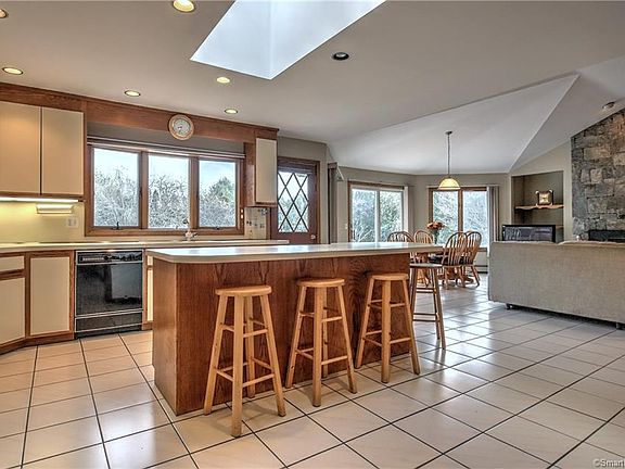 One Level Living At It's Best! This sprawling 4 Bedroom 2.5 Bath north of the Post Rd custom built ranch is situated in a sought after neighborhood, conveniently located to all major highways and metro North train station. The spacious open floor plan features an entry foyer with vaulted ceiling, nicely sized Formal Living Room and Dining Room with Bay window, an entertainment friendly Great Room area features an Eat-in Kitchen with generous cabinet space and large center island, vaulted Dining Area with sliders to custom patio, and dramatic Family Room with with floor to ceiling stone fireplace and cathedral ceiling. Four Bedrooms include a Master Bedroom with full bath and jetted tub. A full unfinished lower level is ideal for a future Game Rm. 5 Garages include 3 attached and 2 detached. A beautiful level over sized yard can fit an in ground pool and all your backyard toys. Add your updates and make this your dream home!
