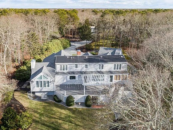 This beautiful, waterfront four bedroom home has been completely rebuilt and designed with guidance from a localarchitect. A 1.7 acre, tranquil setting on Bourne's Pond with a boardwalk to the shore and a small beach; a great area for kayaking, and other recreational activities. This comfortable floor plan offers multiple living spaces and a first floor bedroom suite. The recently updated kitchen includes islandseating, a Wolf five-burner gas cook top, Wolf double ovens and a Sub-Zero refrigerator. Beautiful wood floors throughout and walls of windows upgraded with plantation shutters. The first floor has a living room which is open to the kitchen and dining area as well as a spacious den/music room with gas fireplace and a four-season room. The natural light is amazing! The spacious upstairs has an additional three bedrooms with two full baths. This home is completelyupdated with attention to detail. The lower level is partially finished and has additional storage or space for a workshop. The three-car garage is spotless with direct access into the home adjacent to first floor laundry and full bath AND don't miss the bonus room above the garage!