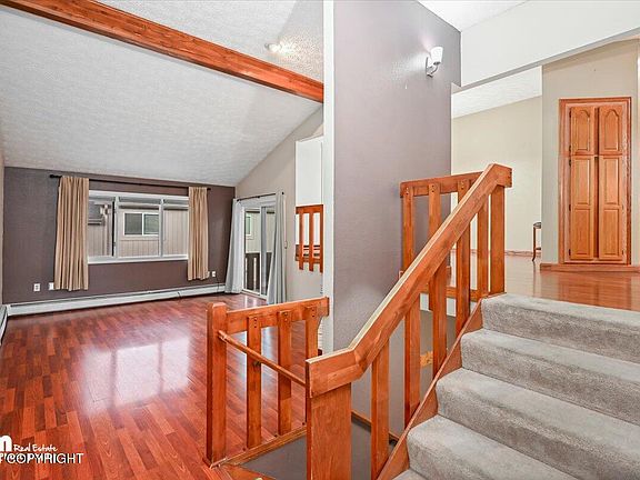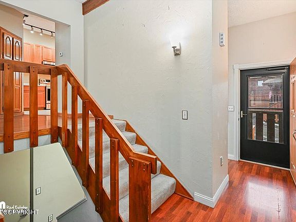 Adorable and clean tri-level home in South Anchorage. Wonderfully maintained with upgraded kitchen and bathrooms. Western exposure and tons of light, vaulted ceilings, living room fireplace and large balcony with storage. Don't miss out on this great condo!