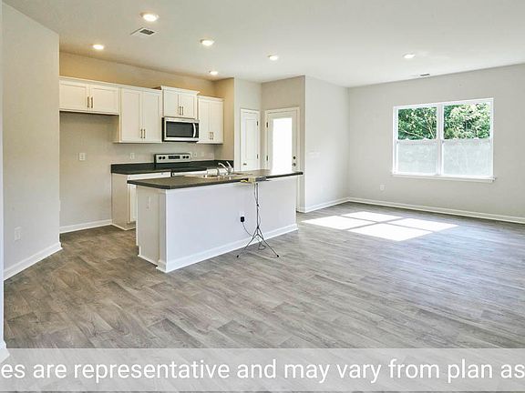 Galvins Ridge located in Sanford, NC! Galvins Ridge conveniently located off of Hwy 1 within 10 minutes of major area employers such as Pfizer, 40 mins to Fort Bragg and 35 minutes from RTP. Master-planned community will feature wide array of home designs & gathering spaces throughout the community to stay connected with friends+family. This Maywood floorplan has a beautiful treeline view behind townhome! Complete with open floor concept giving a grand view of the oversized granite island in kitchen space, a professionally designed kitchen with white cabinets. Hard flooring throughout the first floor. Large, vaulted ceiling in primary. Quality materials + workmanship throughout, with superior attention to detail, plus one-year builder's warranty and 10yr structural warranty. Your new home also includes our smart home technology package! The Smart Home is equipped with technology that includes the following:-Wave programmable thermostat, Z-Wave door lock, a Z-Wave wireless switch, a touchscreen Smart Home control panel, an automation platform; SkyBell video doorbell; Amz Echo Dot. Pictures are representative! June Closing!