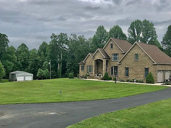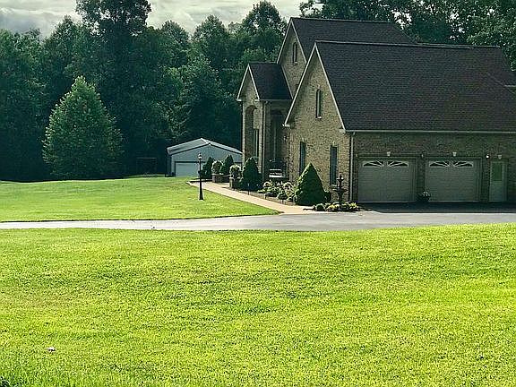 Beautiful 2 story brick home sits on 2 plus acres in the heart of West Liberty. Front porch and back porch. Two car attached garage. Fireplace, Anderson windows, walk in closets. Two stairways to upstairs. Large bonus room upstairs with pool table. Huge attic space. Floors are wood, tile, marble, carpet. Large outdoor metal building 30x58 woodworking shop or can be used as an storage building. Well maintained.