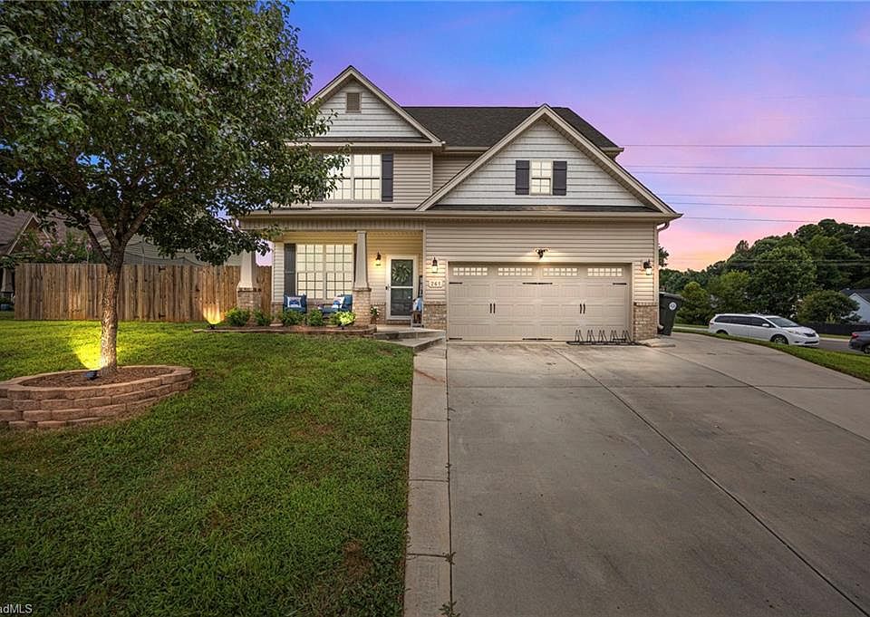Corner lot, MOVE IN READY, 4 Bed, 2.5 bath, primary on the main, 3 beds on the second floor with large flex space. Partially fenced in yard, with play set, and gazebo which has a roll down screen. Storm door to the back yard with a doggie door. The building behind the fence conveys. The garage has carpet, a mini split heating and cooling system, ceiling fan and built ins. It was used as a class room during covid. Can be converted back into a garage. New roof within the last 5 years on house and outbuilding. Please ask for the list of upgrades attached to the mls.