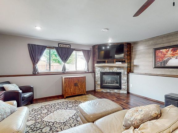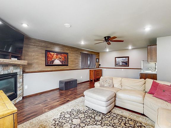 Come on in and see this beautiful 4 level home! Primary suite with walk in closet and its own private bathroom. Sellers finished the lower levels which included a bathroom, family room, 4th bedroom, and a laundry room with built-in cabinets. This provides additional living space and convenience for everyday activities. Family room has a wet bar and a gas stone fireplace. The backyard is an entertainers dream with a BBQ canopy, new patio (2020), newly painted shed, bonfire pit and gorgeous landscape. Its also private with a full fence and separate kennel area for dogs. The home offers plenty of storage options, including a large walk-in closet in the basement, utility room with wood shelving and a spacious 3-car garage. Block away from park and walking paths along a pond. Close to sunflower fields, restaurants, shopping, Lake Rebecca, and Delano splashpad. In ground Sprinkler system. Lower level of home professionally soundproofed when finished.
