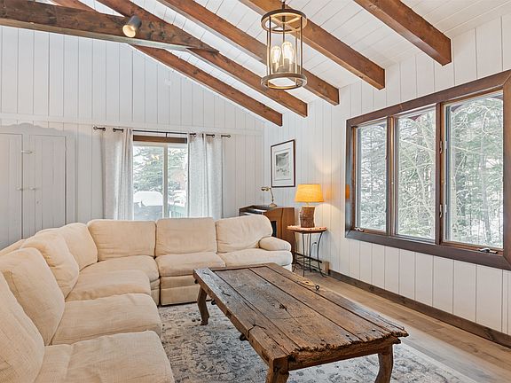 Slopeside 6 Bedroom Ski Chalet at Carinthia Base, Mount Snow This ski chalet is perfectly positioned at the base of Carinthia, offering true slopeside access and unmatched convenience. Step out your door and onto the trails, with the Carinthia Base Lodge, terrain parks, lifts, and all the action of the mountain just steps away. Inside, the home blends classic chalet character with thoughtful modern updates. The main level opens to a bright, living space with cathedral ceilings, exposed beams, and oversized windows. The brick fireplace anchors the great room, creating a warm and welcoming après ski setting. The open concept design flows into a beautifully renovated kitchen featuring soft-gray cabinetry, stainless steel appliances and plenty of prep space, all adjoining a dining area made for family gatherings. Sliding doors lead to an expansive deck, the perfect spot to relax in every season. With six comfortable bedrooms, the home easily accommodates large groups or even two-family ownership. The direct entry garage is a great space for a toys or sports equipment. From first tracks in the morning to sunsets on the deck, this slopeside Carinthia chalet delivers timeless Vermont charm, unbeatable trail access, and space for everyone to enjoy the year round adventures at Mount Snow.