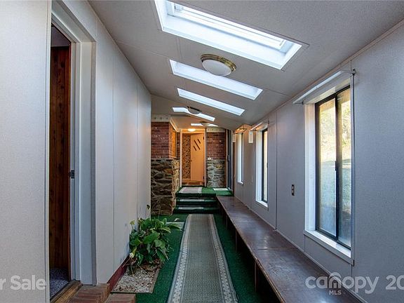 Come check out this unique property nestled within beautiful mountain views. This property boasts a 60ft long covered bridge, babbling creek, finished 2 car detached garage, finished RV storage garage, shop with full basement (all of which have power), rock terraces, two wells and a mature apple orchard. The possibilities are endless on this 5.55 acer tract. The home features a unique atrium that connects to a sunroom to display all of your favorite plants, multiple skylights and windows to ensure the plants thrive, single car attached carport and garage. Also comes with 2 fireplaces, spacious kitchen and living room great for entertaining, separate room for an office that's perfect for working from home. Tons of character in this gem. This property has the potential to make a duplex. All this is minutes from all Leicester, Candler, and Asheville have to offer. It's time to escape the city and get back to the stars. Being sold as is.