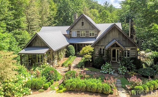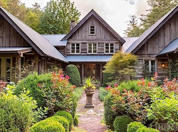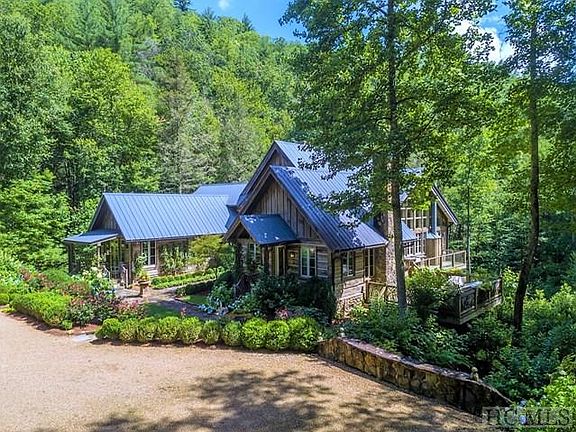 This quintessential mountain retreat is being offered for the first time. Resting perfectly on almost 8.5+/- acres, this estate property enjoys a true mountain lifestyle beyond compare. The warm main home is built with a series of reclaimed timbers and traditional construction, creating the best of the old world with the modern feel that is demanded by today's buyers. The screened porch enjoys the sights and sounds of the true headwaters of the Horsepasture River. With three bedrooms in the main home and two bedrooms plus an additional sleeping room in the guest cottage, there is plenty of room for family and friends. What completes this property, however, is the land itself, as the impeccable grounds are beautifully landscaped from end to end leading you up to a Master Garden which includes a wide variety of native plantings, mazes, and vegetables. The Master Garden was once a riding ring, and the guest cottage was once the stable. You will enjoy complete privacy in this oasis, yet you are seconds from town just inside the Big Sheepcliff community.