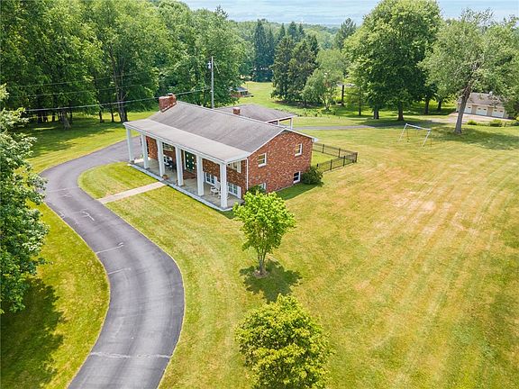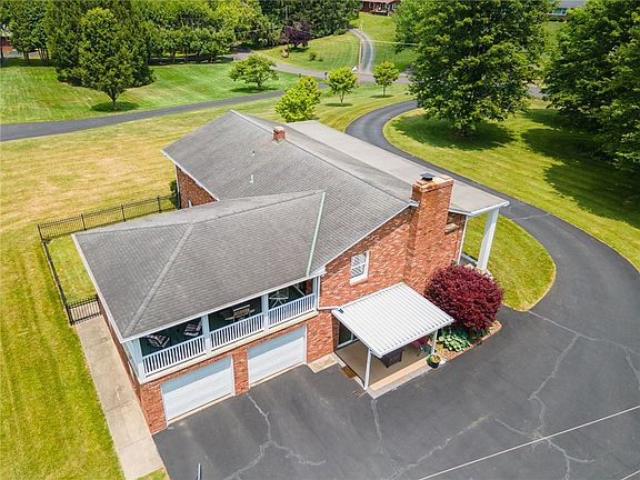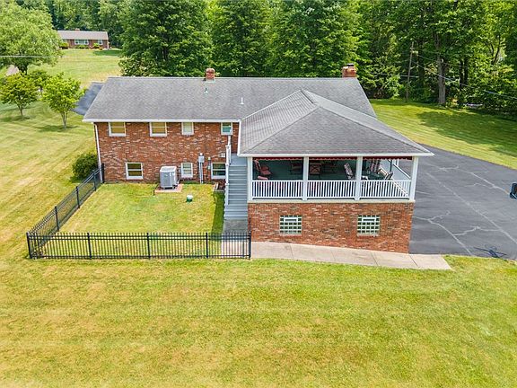 Travel down the meandering driveway to this stately, columned brick home on nearly 5.5 acres. Plenty of room to roam both indoors and out with six bedrooms and three full baths. The beautiful kitchen features ample cherry cabinetry, quartz counters, a center island with seating and walks out to the massive 24’x24’ covered patio – ideal set up for easy entertaining! The finished walk-out lower level with wood burning stove offers expanded living space. Plenty of space for your cars and toys with the attached two car garage AND the 24’x 36’ heated 3-level garage with power. Private and peaceful, yet convenient to all amenities.