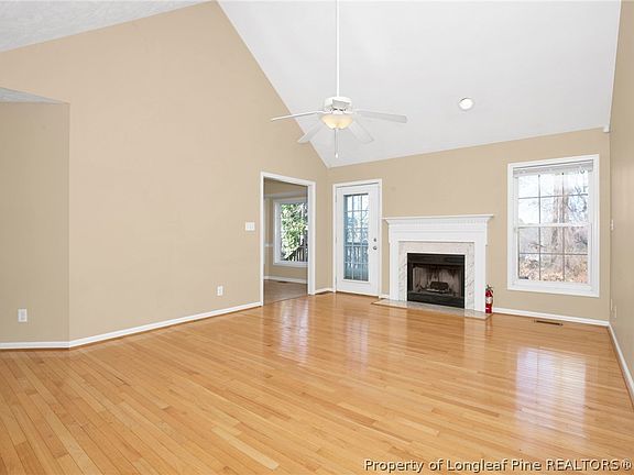 This cozy three-bedroom, 2 bath home is nestled among mature landscaping and a sizeable front yard featuring a 2-car garage with side door access and a bonus room above. Throughout the home, you will find hardwood floors, carpeted bedrooms, and ceiling fans throughout. The kitchen features granite countertops, stainless steel appliances, and a breakfast nook overlooking the woods. There's a formal dining room overlooking the living room. The living room’s wood-burning fireplace provides comfort. The backyard is perfect for entertaining that is accessible off of the living room. The owner's suite features a walk-in closet, an ensuite bathroom that has a garden tub with a separate shower, and double vanity sinks. The seller is gifting the washer/dryer and refrigerator to the buyer. This property is minutes from Methodist University, Fort Bragg, and highways. Be prepared for this to be ‘love at first sight’.