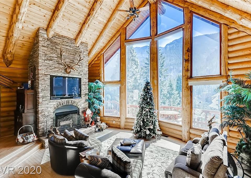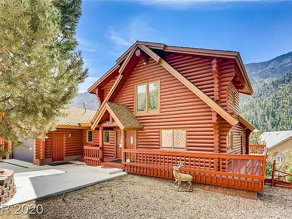Extraordinary luxury log home nestled in Toiyabe Nat'l Forest, 30 minutes from Las Vegas! Aprx. 3728 sqft. Enjoy the quintessential mountain lifestyle in this quality crafted elegant home. Take in the fresh mountain air and magical mountain/forest views. Enjoy seeing an abundance of wildlife in your own yard (deer, wild horses, Stellar Jays, hummingbirds & more). With the ambiance of a mountain lodge, this home showcases a great room with vaulted ceiling & a stunning floor-to-ceiling stone accent wall with a wood burning fireplace. The focal point is the spacious kitchen w/custom cabinetry, granite, stainless appliances & breakfast bar. Inviting dining area w/rustic chandelier. The exterior deck offers additional space for entertaining, alfresco dining & enjoying the four seasons. Huge family room with wood burning fireplace. Billiard/game room. After a day of hiking or skiing, enjoy the steam room. Mostly level backyard topography. Most furnishings included + built-in Onan generator.
