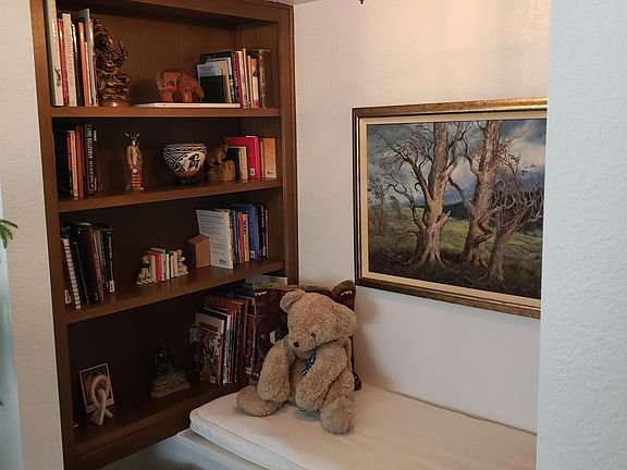 This home has character, views and a feeling of seclusion. Your own private sanctuary with towering trees and a fenced yard. A courtyard serves as a welcoming entrance plus the perfect spot for outdoor dining or star gazing! Two of the 3 bedrooms have served as home offices but are easy to visualize as the large bedrooms that they are! Or, you have the flexibility to leave one as a family room/office. Both have access to the beckoning rear yard and wooden decks. Owners have been fastidious in maintaining the home and yard. The living room has an inviting alcove to snuggle up and read. You will be amazed by all the storage/closet space. There is a buffet/bar for easy serving to both the dining room and living room.