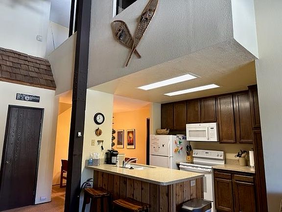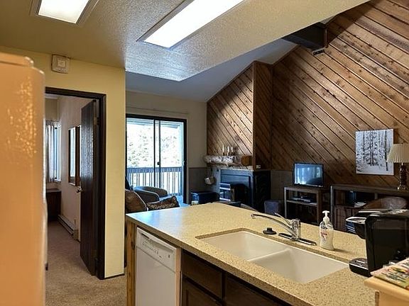 Nicely upgraded condo, not rented, so very clean and EZ to show. Vaulted ceilings, lots of storage, private ski locker in garage. Carpet and pellet stove are newer. Granite Kitchen counters, newer GE white appliances. Tile floors in kitchen and baths. On shuttle route, and situated between Canyon Lodge and the Village. Underground parking with 1 assigned spot and several open spots on a first come basis. The cable TV is an additional $51.00 per month, a bulk rate through the HOA, not included in the $453 monthly HOA fee. Fully furnished as seen. Turn key and ready. Double pane windows, shuttle stop very convenient. The third bath is very unique to the 1+L floorplan and is great for those early exits to the Mountain.