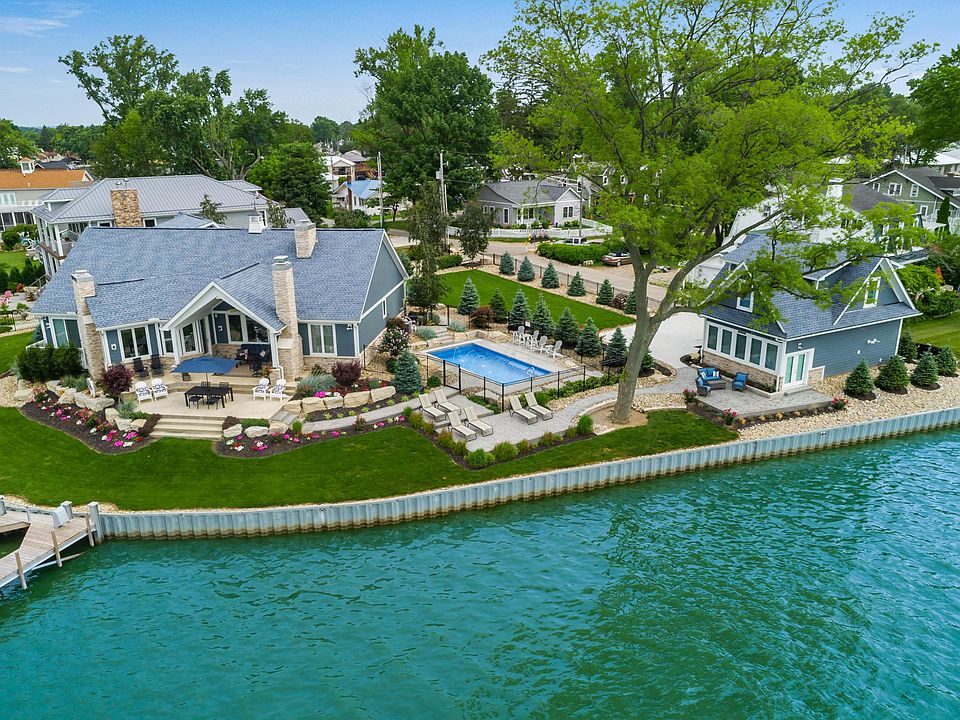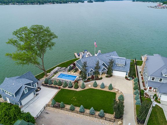 2 STUNNING Waterfront Properties! Main Residence, 251 Lakeview Dr., Guest Residence, 261 Lakeview Dr. 287' lake frontage. 1/2+ acre, over 4K sq ft, 4 garages, 2 laundry's, 2 kit's, 2 great rms, 6 BR, 6BA, Office, Hearth Rm, 3 stone fps, 3 Docks, 2 low profile lifts, galvanized steel seawall, fully irrigated, stunning & plentiful hard & soft scapes, large lawn areas, fenced & gated estate, inground heated saltwater swimming pool w/led lighting, waterfalls, loungers, automatic cover & winter cover, 5 levels of outdoor entertaining area, guest dock parking, space for 11 cars on driveways, great location on north side of the lake, breathtaking point boasting Sunrise & Sunset w/ panoramic vistas. Directly across from the Fireworks. Stunning design & architecture in these beauties.