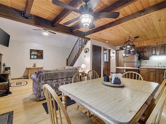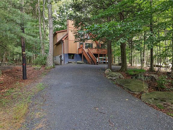 Location, Location, Location!! Beautiful Chalet home in a four season amenity filled community. This bright home has some hardwood flooring, knotty pine ceilings, hot tub and sauna room, cozy brick fireplace, NEW roof and gutters, landscaping, ample off-street parking, and full wet bar with game recreation area great for entertaining. Home is conveniently located within walking distance of the lake, and beach. This is the perfect vacation home or full-time residence, with a quick two hour drive to major cities of NY, NJ, and Philadelphia. The all-season amenity filled community includes several lakes, main lodge, sports complex & gym, two beaches & power boat lake, indoor & outdoor tennis courts, golf course & mini golf, ski & tubing area, and art & woodworkers center.