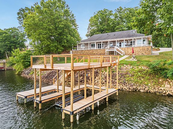 3 BEDROOM HOME, PRIVATE DOCK, SEPARATE LIVING QUARTERS - Welcome to your dream home with breathtaking water views of the Tennessee River! As you approach, you'll be captivated by the private dock and the expansive wrap-around porch that promises serene relaxation and stunning scenery. The outdoor kitchen is perfect for alfresco dining, and the property boasts both a 2-car detached garage in which you will find separate living quarters that include 1 bedroom and 1 full bathroom. As well as a 1-car detached garage, offering ample space and versatility. Step inside to be greeted by a formal living space that exudes elegance and charm. The heart of the home is the spacious kitchen, offering panoramic views of the water, making meal preparation a delightful experience. Adjacent to the kitchen is a formal dining room, perfect for hosting dinner parties, and another cozy living area ideal for intimate gatherings. On the other side of the home, you'll find two inviting bedrooms, both with direct access to the wrap-around porch, providing a perfect retreat to enjoy the tranquil surroundings. A full bath serves these bedrooms, ensuring comfort and convenience. The master suite is a true sanctuary, featuring large windows that frame the picturesque water views and offer access to the back porch. The en-suite bathroom is a luxurious escape with a walk-in shower and jetted tub. Additionally, the home features a massive walk-in crawl space, offering endless possibilities for storage or workshop. This property is a rare gem that combines luxury, comfort, and unparalleled water views - truly a place to call home.