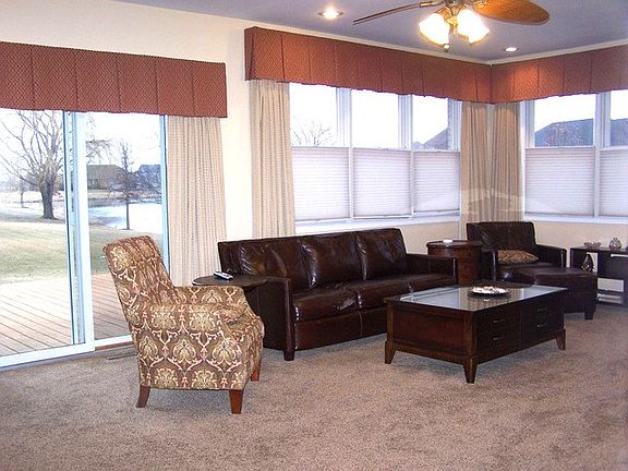 Impressive custom-built brick home. Beautiful pond views from both front & back. Eat-in kitchen w/maple cabinets, solid surface, pantry, and ceramic tile. Laundry hookup on first floor and basement. Heated garage floor. Finished basement has bath with adjacent sauna, family room, game room, bonus room, two cedar closets, and lots of storage. Taxes are calculated with no exemptions. Will consider selling on contract.