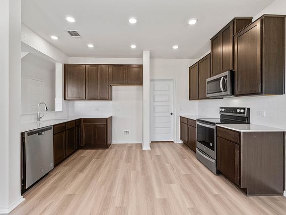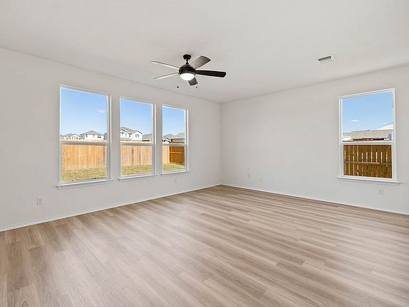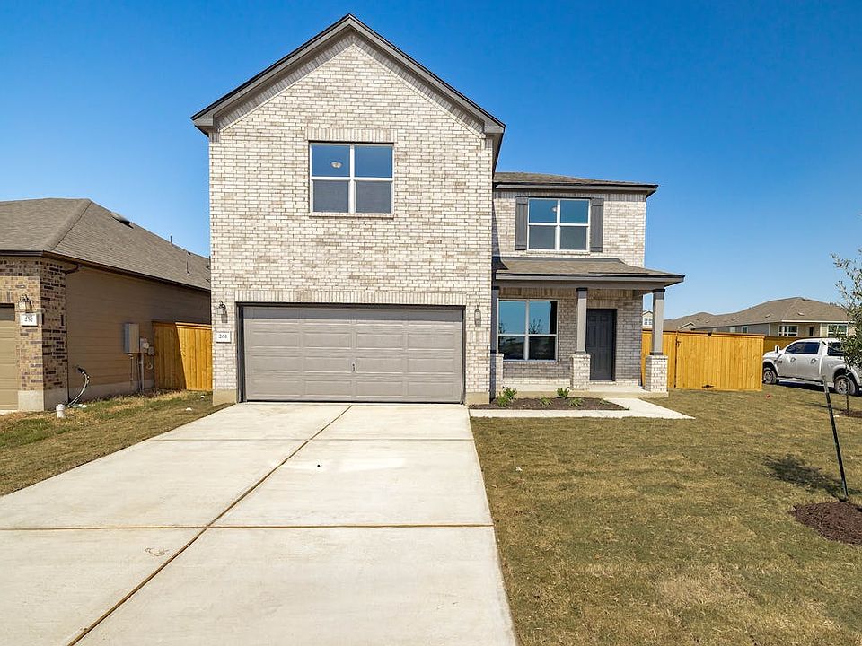 **BUYER INCENTIVE AVAILABLE, SEE SALES TEAM FOR DETAILS** This lovely, two-story home features an open floor plan with 9-ft. first-floor ceilings and a spacious great room. The modern kitchen showcases Woodmont® Shaker-style maple 42-in. upper cabinets in Smoke, Silestone® countertops and tile backsplash. A den makes for an ideal private home office. Upstairs, an open game room provides space for a media or play area. The primary suite boasts a walk-in closet and connecting bath that offers a dual-sink vanity, marble garden tub and separate shower with tile surround. Finishing touches include plush carpeting at game room and bedrooms, vinyl plank flooring at kitchen, great room, den and baths, Sherwin-Williams® zero-VOC interior paint and ceiling fans at great room and primary bedroom. Entertain family and friends on the covered back patio.