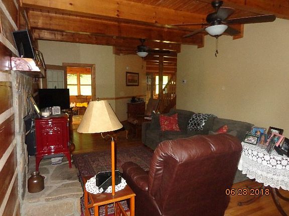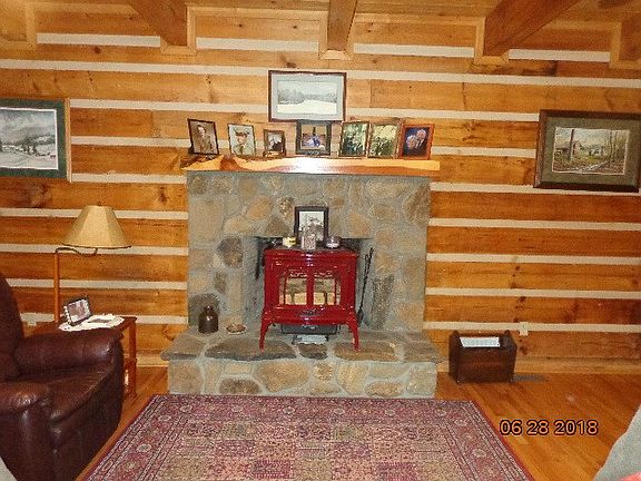 Get away from it all with this lovely log home on 12 + acres! Additional early 1900's house also on property!! End of road privacy with creeks and natural streams running thru property and a mountain view !!! Native rock walls and steps add to the charm of a well maintained property. 3 bedrooms , 2 baths. updated kitchen with maple cabinets, quartz counter tops and all stainless appliances, Large master bedroom with walk-in closet - master bathroom updated with 2 separate vanities and sinks. Dining room off kitchen, along with sun room. Family room has stone fireplace with wood stove. Private well, walk ways and benches thru out property- New garage door and gutter guards installed in 2017. Added extra "man cave' accessed from garage. could be used for storage or office. Large bedrooms on 2nd level with high ceilings. This property is a must see!! Would make a great full time home or vacation home. Build a barn,near fenced area and have a mini farm. A short walk in the woods will lead you to view a waterfall- with a bench to enjoy the sound of the creek.. or just relax on the covered front porch and enjoy the mountain view. This property consists of 2 pin # 7588-55-2039-