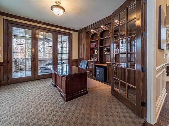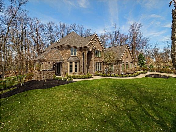 Welcome home to this all brick custom stunner in Adams Township’s sought after community of Indian Meadow, nestled on nearly an acre of wooded, mature trees within a private cul-de-sac. Flanking the spacious foyer is the private home office boasting 8’ French doors, large windows, crown molding, custom wood working, built in shelves and another set of doors to a private covered porch. Accessible from the dramatic 2-story foyer is the luxurious custom detailed dining room. Adorned with a tray ceiling, wainscot paneling, crown molding and hardwood flooring this elegant space is sure to impress. The dining room also features a custom butler’s pantry with an artistic backsplash and stunning cabinetry. Awe inspiring family room with soaring floor to ceiling windows will grasp your attention from the moment you enter this beautiful home drawing your eyes to the private, wooded homesite. A perfect view. The two-story custom stone fireplace meets the crown molding and tray ceiling for added dramatic appeal. Neutral tones set the stage for your furniture and décor. A bright casual dining area features 8’ French doors to the back patio and ample entertaining area. A chef's dream kitchen featuring stainless steel Jenn-Air appliances, expansive granite counter tops to include an oversized center island with seating for four, beautiful two toned custom cabinetry, stylish custom backsplash, under cabinet lighting and a pot filling faucet above the 6 burner gas cook top. A wrought iron staircase leads to the second level boasting stunning views of the family room and the completely private back yard. The Owner's suite is enormous, with a cathedral ceiling and a fireplace for a dramatic flair. Pamper yourself in the spa like owner’s bath with a jetted tub, custom vanity with dual sink, custom stone, STEAM SHOWER with multiple shower heads, a separate water closet, and an amazing large custom walk-in closet and a separate lighted vanity will please any home owner. Guest bedrooms 2, 3 and 4 each boast their own en-suite full bath, cathedral ceilings and generous storage. Entertainer's dream finished walk-out lower level game room features a custom fireplace, gorgeous hand crafted wet bar with seating, vapor wrapped wine room, a full bathroom and two spacious unfinished storage areas. Step out to the fenced in back yard complete with a fabulous resort-style in ground pool, professionally landscaped homesite with boulder walls and patio areas with sound system and an awning!